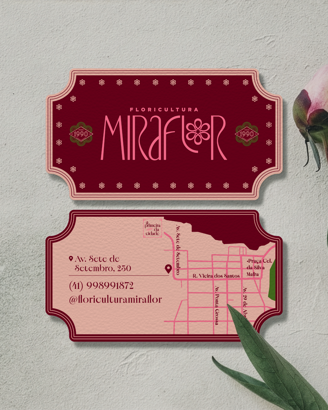 Floricultura Miraflor is a family-owned and traditional business in Guaratuba, with 35 years in the market, which until recently operated in a conventional way and with little digital presence. With the new visual identity, essential brand elements were developed, such as a color palette, logo, and textures. Resources were also created to strengthen the online presence, especially through social media and Google, expanding the store’s visibility and reach while preserving the traditional and historical essence of being the city’s first flower shop.