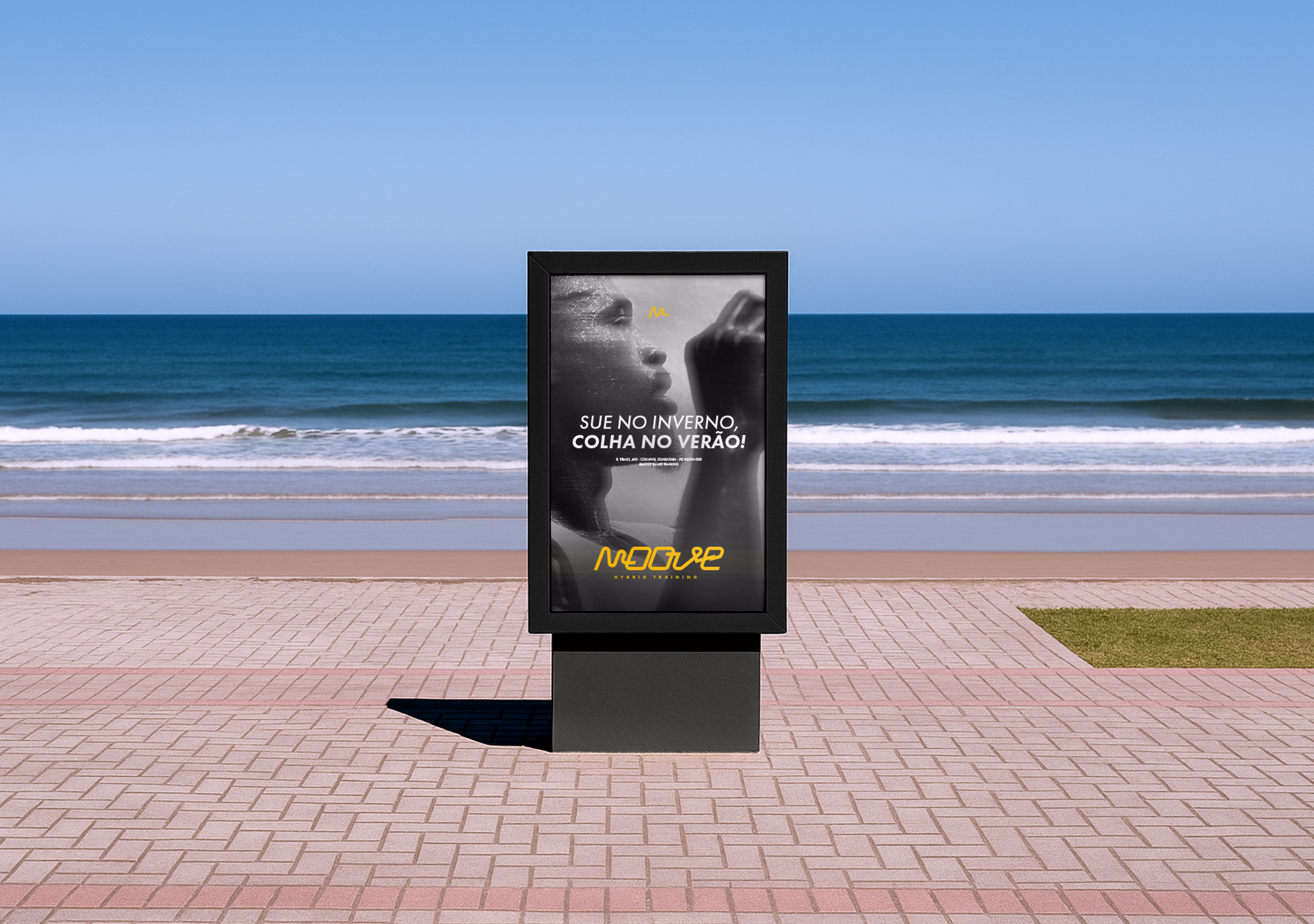 As part of this evolution, the color palette was expanded with the addition of a neon tone, designed especially for use on social media and digital materials, bringing more energy, impact, and presence. In addition, the new symbol, extracted from the logo and created exclusively for Moove, carries the representation of a heartbeat, visually reinforcing the idea of intensity, effort, and connection with training.